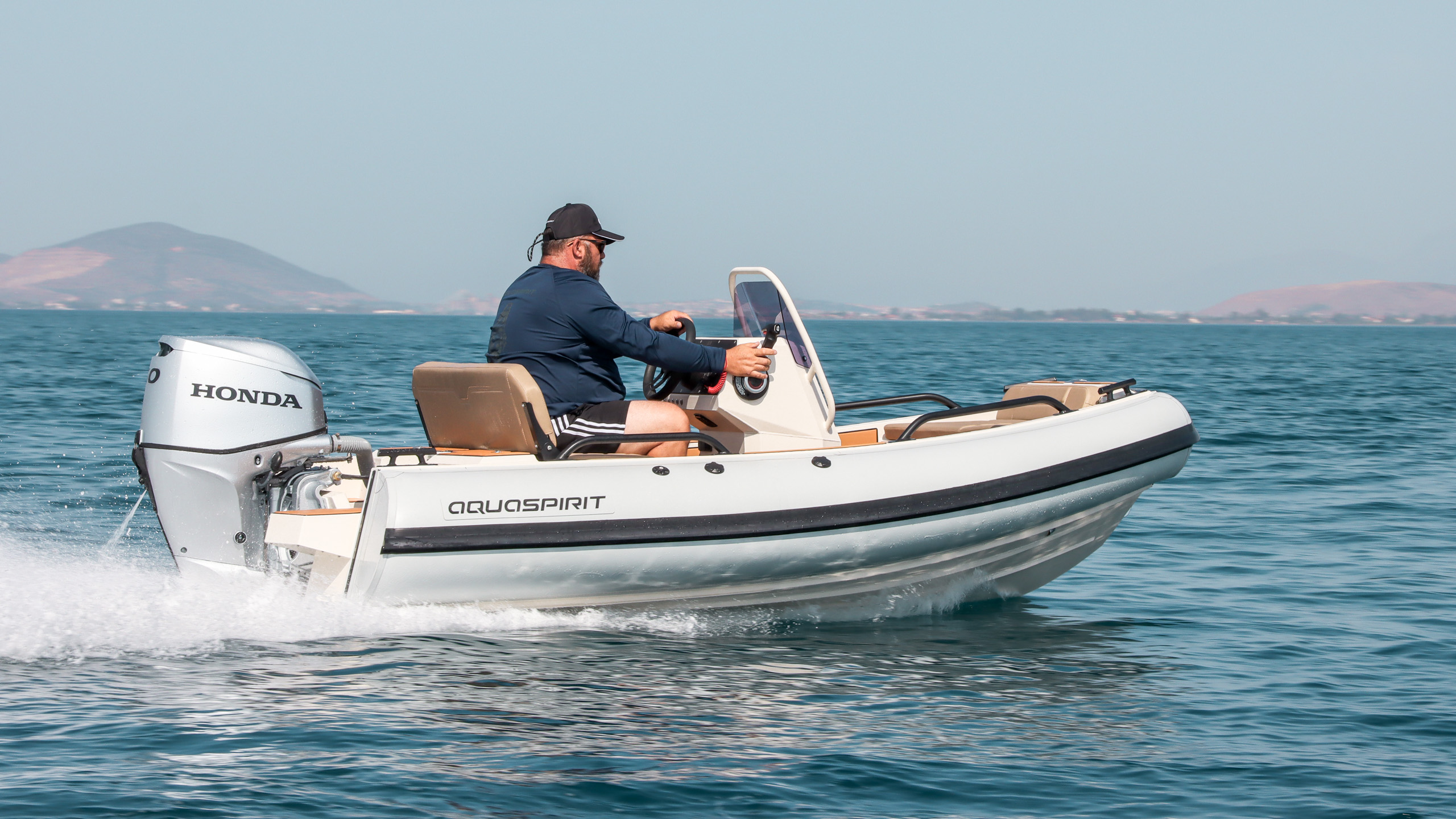 El Aquaspirit S370 es una semirrígida auxiliar rápida y ágil con undiseño único. Esta embarcación combina unas dimensiones externascompactas con una impresionante cabina de 1,20 m de ancho, concapacidad para acomodar, hasta cuatro personas. Viene equipada conuna consola que cuenta con un parabrisas, barandillas perimetrales ymucho espacio de almacenamiento para objetos personales. Unacaracterística clave del S370 es su mecanismo especial plegable dela consola de mando para el almacenamiento en el garaje de laembarcación auxiliar, una solución ideal para los propietarios deyates. La embarcación está equipada con un depósito de combustiblede aluminio de 40 litros integrado, lo que permite realizar largosviajes sin repostar. Una amplia plataforma de proa garantiza un fácilacceso a la cabina, mientras que la disposición de la cubiertaabierta permite una configuración de consola central o lateral. ElS370 viene equipado de serie con un mástil de esquí desmontablepara deportes acuáticos y también puede equiparse con plataformasde popa con una escalera plegable integrada.